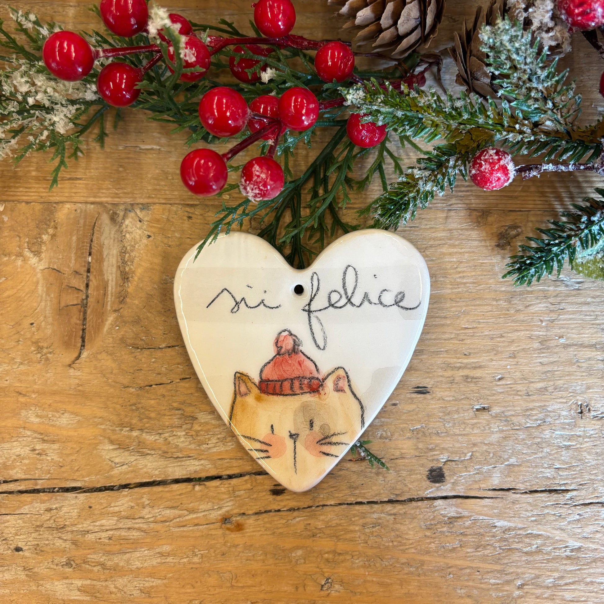 Cuoricini in ceramica interamente realizzati e dipinti a mano da noi. Ognuno porta con sé un messaggio speciale da regalare o regalarsi. Sono tutti pezzi unici ed è per questo che potranno differire dalle foto . Se il prodotto è esaurito contattateci per verificarne la disponibilità in negozio. Dimensioni: 8x8,5cm