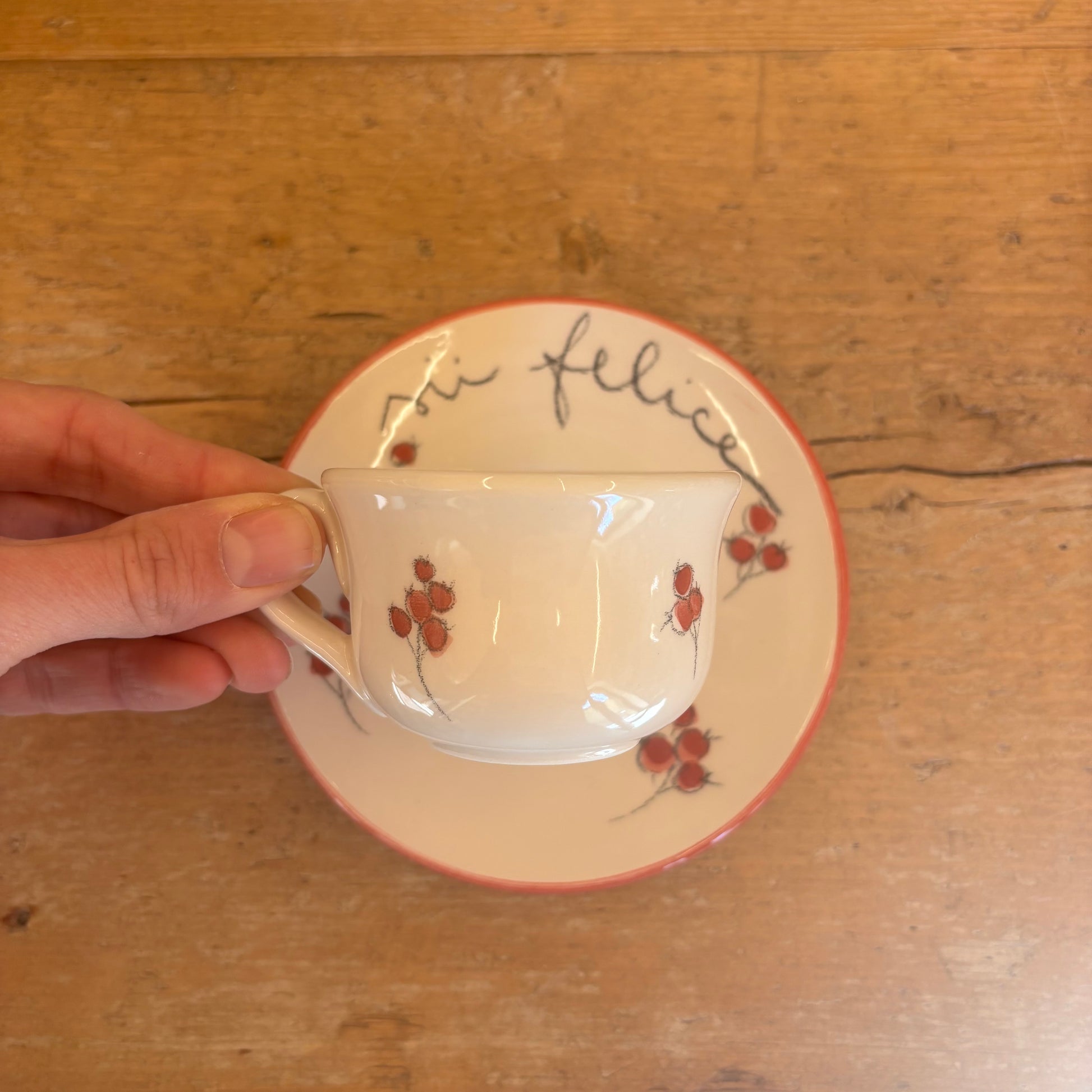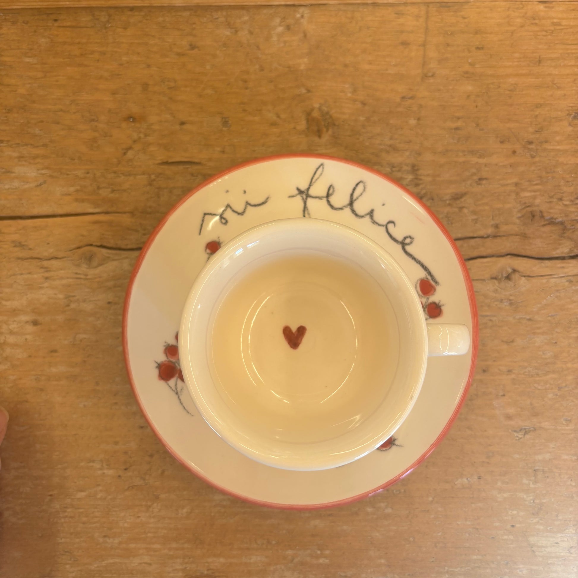 Tazzina con piattino in ceramica dipinte a mano da noi. Ognuna porta con sé un messaggio speciale da regalare o regalarsi.Sono tutti pezzi unici ed è per questo che potranno differire dalle foto .