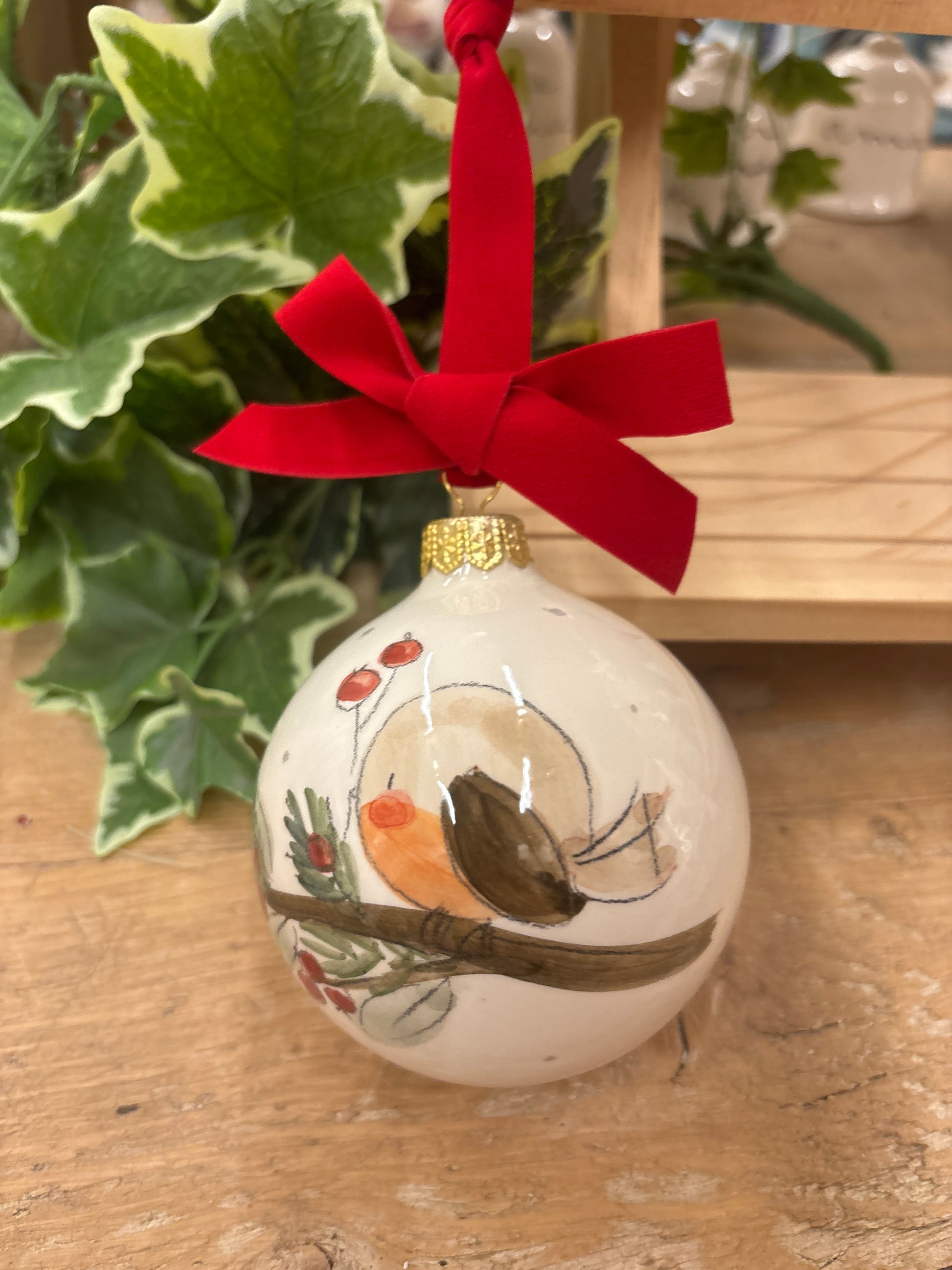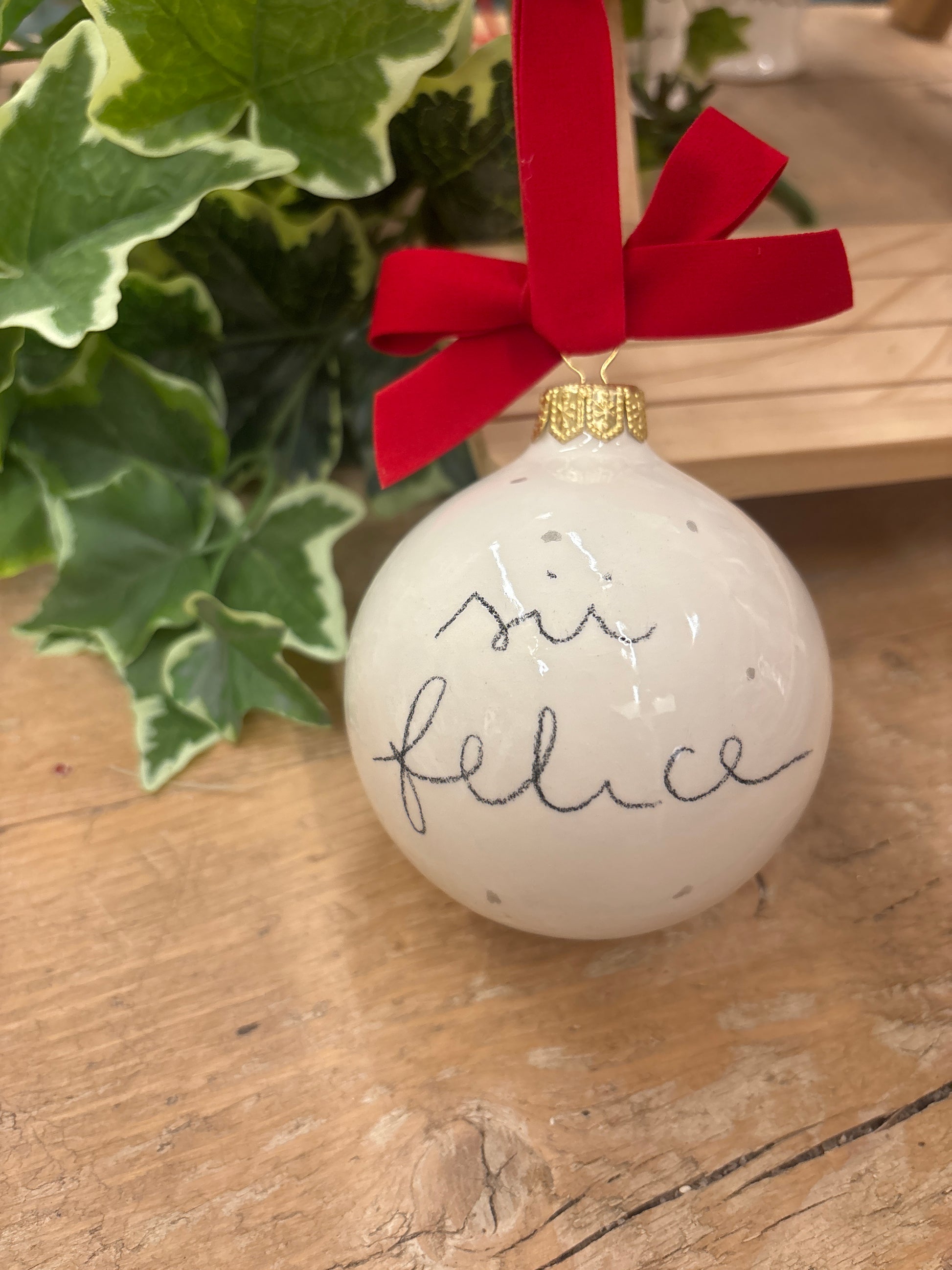 Pallina in ceramica diametro 8cm decorata a mano con scritta SII FELICE.